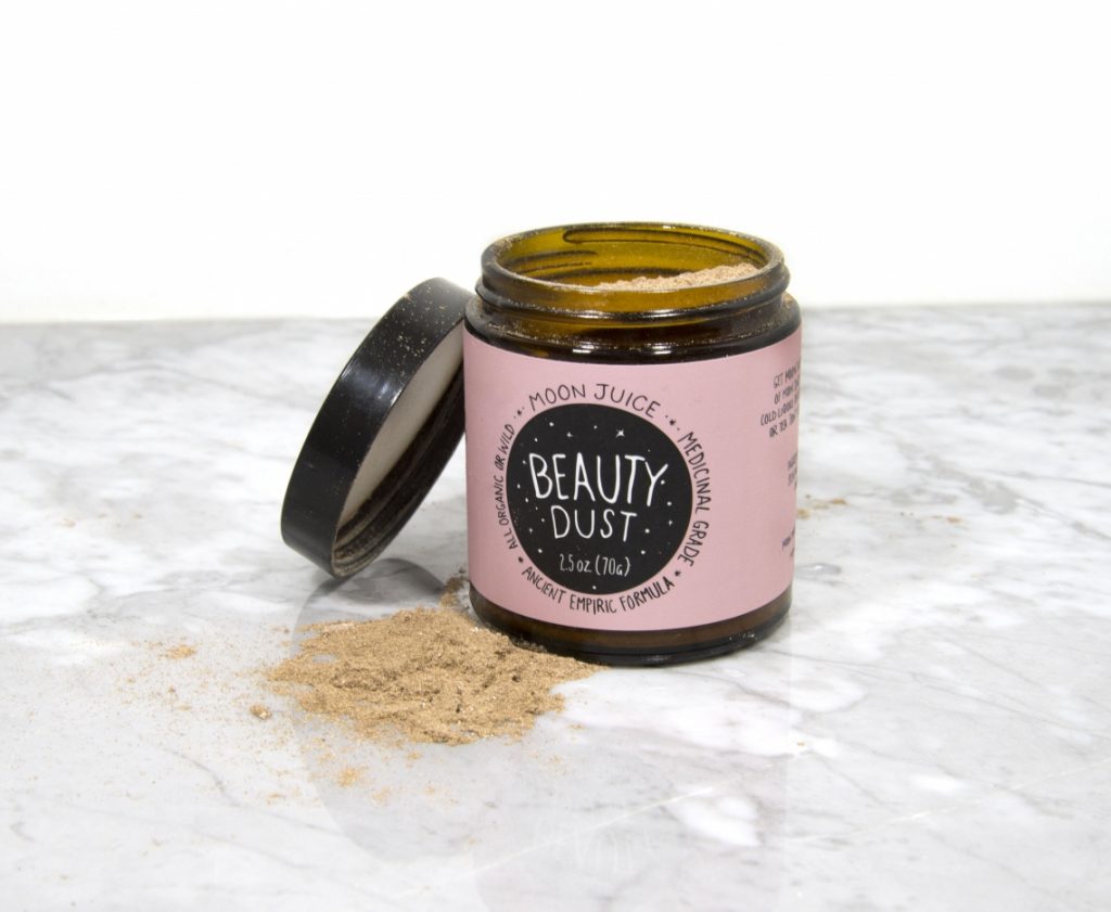 Uno de los productos que esta blogger recomienda es el suplemento Beauty Dust de Moon Juice. Moon Juice es una firma de zumos prensados, súper alimentos en polvo, leches vegetales, proteínas y tónicos. Tiene mucha fama entre las gurús de la belleza. Sobre todo las californianas, las más obsesionadas con el físico.